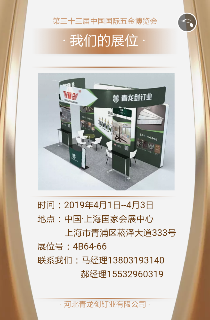 青龍劍釘業(yè)--第三十三屆中國國際五金博覽會邀請