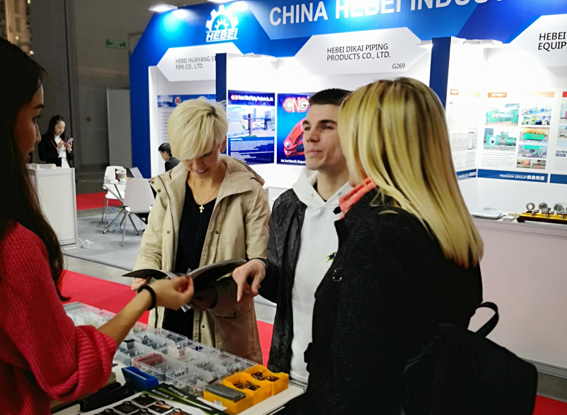參展商到青龍劍展廳前咨詢產(chǎn)品詳情,本次展會由莫斯科大學博士后、中國最美志愿者徐琛全程翻譯。