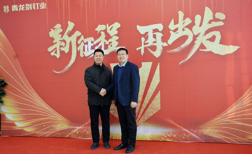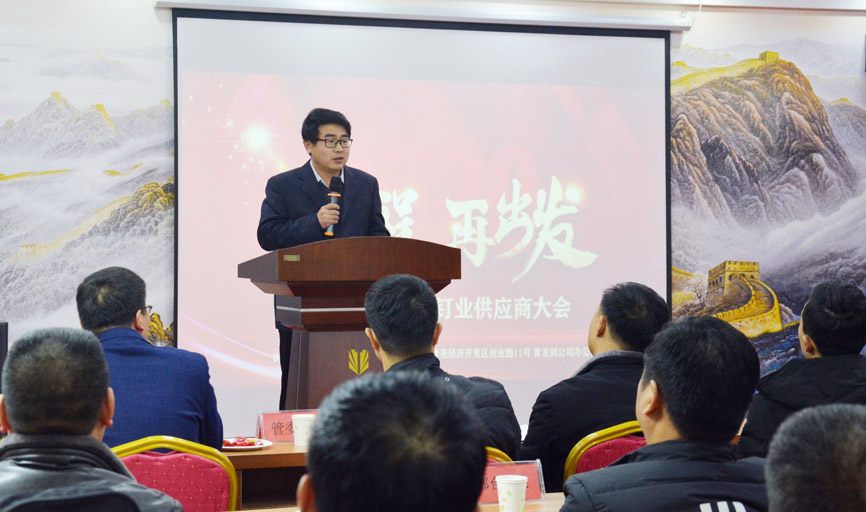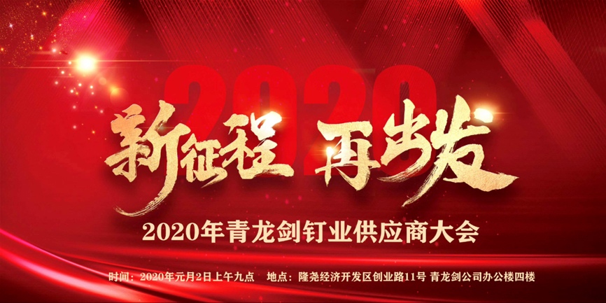 2020年1月2日上午9點,青龍劍釘業(yè)2020年度供應商大會在青龍劍經濟開發(fā)區(qū)公司盛大召開,本次大會以“新征程,再出發(fā)”為主題,青龍劍董事長馬志華、總經理馬群澤及各部門負責人與隆堯經濟開發(fā)區(qū)領導、公司原輔料供應商共計160余位嘉賓共同出席了此次盛會。