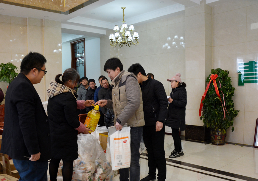 員工會議結(jié)束后,員工們領(lǐng)取公司為大家準備的福利。