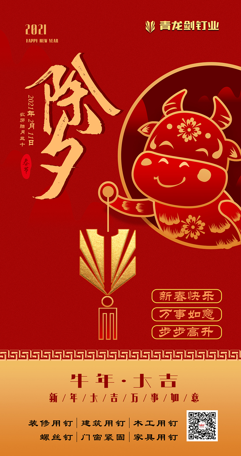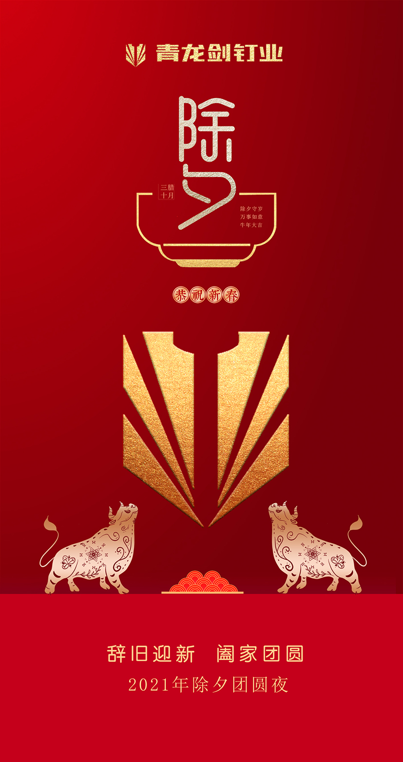 長河悠遠,天地常新。2021年新春的曙光即將開啟時間之門,在這辭舊迎新的美好時刻,我們向關心和支持青龍劍公司發(fā)展的社會各界同仁、全國的經(jīng)銷商、供應商和用戶朋友們致以親切的節(jié)日問候和誠摯的新春祝福!向奮斗在一線工作崗位、勤勉敬業(yè)的青龍劍員工致敬!