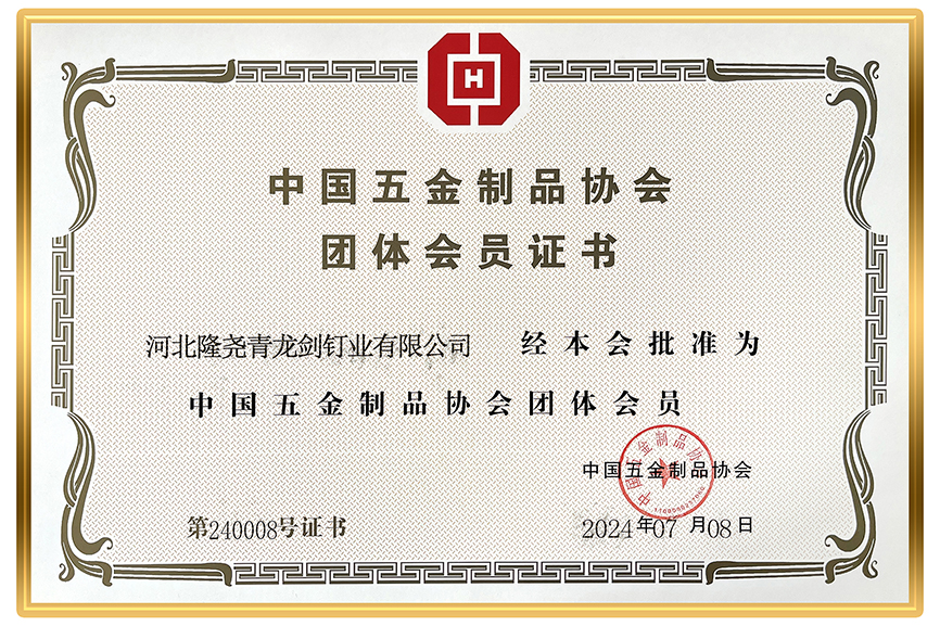 熱烈祝賀青龍劍公司成為中國五金制品協(xié)會團(tuán)體會員,經(jīng)過中國五金協(xié)會嚴(yán)苛審核,青龍劍公司于2024年7月8日榮獲中國五金制品協(xié)會頒發(fā)的團(tuán)體會員證書。青龍劍公司作為行業(yè)領(lǐng)軍企業(yè),以此為契機(jī),以強(qiáng)烈的責(zé)任心,高度的使命感,引領(lǐng)行業(yè)穩(wěn)步前行,努力創(chuàng)建國際先進(jìn)智能制造全產(chǎn)業(yè)鏈工廠。-