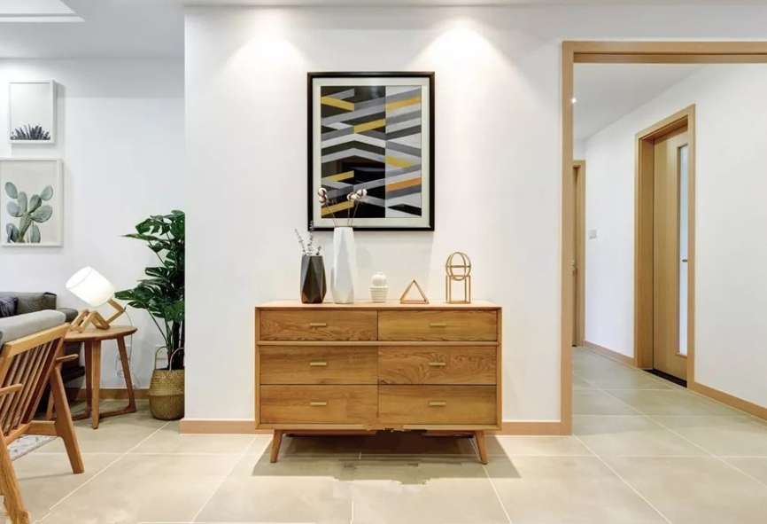 一、墻面:依墻而設的玄關,其墻面色調是視線最先接觸點,也是給人的總體色彩印象。不同的色彩帶給人不同的心境,也暗示著室內空間的主色調。玄關的墻面最好以中性偏暖的色系為宜,能讓人很快從令人疲憊的外界環(huán)境體味到家的溫馨,感覺到家的包容。