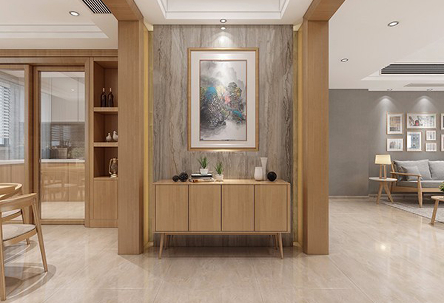 1、玄關通常與客廳或餐廳相連,但與廳的功能有區(qū)別,所以要通過裝飾設計進行功能分區(qū)。通常采用的方法主要是吊頂、墻面裝飾、地面的材料和色彩等區(qū)分或用門套、掛落、屏風、柜子等隔斷。玄關可以是一個封閉、半封閉或全開放的空間,與廳的關系是連而不直達、隔而不斷。